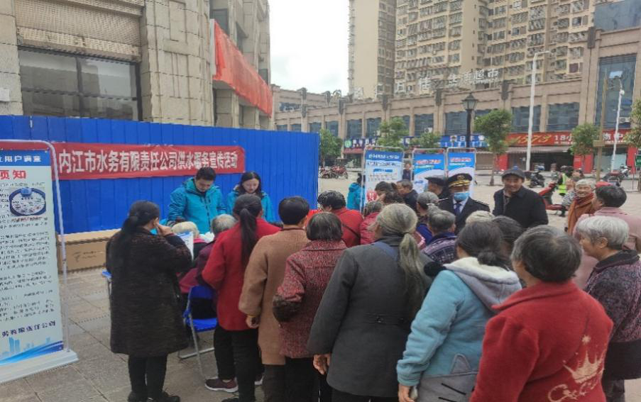 10月27日下午,市水務公司客戶服務部、生技部、二次供水服務公司聯(lián)合開展了宣傳進社區(qū)活動。工作人員統(tǒng)一著裝,黨員佩戴黨徽,現(xiàn)場與內江市漢祥小區(qū)居民開展“面對面、零距離”交流。講解二次供水、階梯水價、垃圾處理費、水費單價生成等用戶關心的問題,并提倡大家節(jié)約用水,宣傳水資源的重要性。
