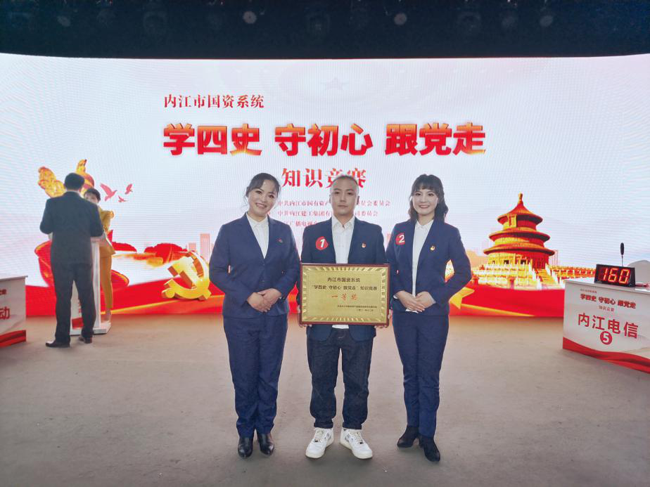 2021年12月28日下午,由中共內(nèi)江市國有資產(chǎn)監(jiān)督管理委員會委員會主辦,中共內(nèi)江建工集團有限責任公司委員會承辦的內(nèi)江市國資系統(tǒng)“學(xué)四史 守初心 跟黨走”知識競賽在內(nèi)江廣播電視臺演播大廳舉行。來自市級各企業(yè)的8支隊伍24名選手參賽,我司選派的劉梅、袁琳、熊瑞凱3名同志代表參加了此次競賽。
