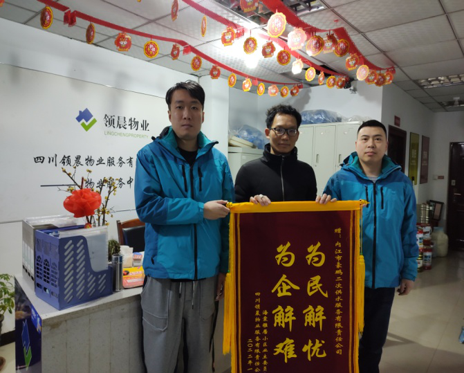 “我們小區二次加壓設備運行異常,樓棟的9-18層已經停水2天了,請你們幫我們檢查下……”。1月24日下午14時,東興區海棠雅居物業工作人員向市水務公司豪鵬二次供水公司打來求助電話。經查,該小區二次供水設施老舊,設備常年未進行維護保養,導致設備故障和中區出水管止回閥銹蝕堵塞。該小區二次供水設備尚未移交豪鵬公司管理,加之臨近春節,物業專業維修人員缺乏,本著保障群眾用水安全的初心,豪鵬公司立即組織開展供水搶修工作,于當日18時完成搶修并恢復正常供水。小區業主委員會、業主和小區物業對市水務公司“為群眾辦實事”優質服務點贊,被授予錦旗“為民解憂 為企解難”。