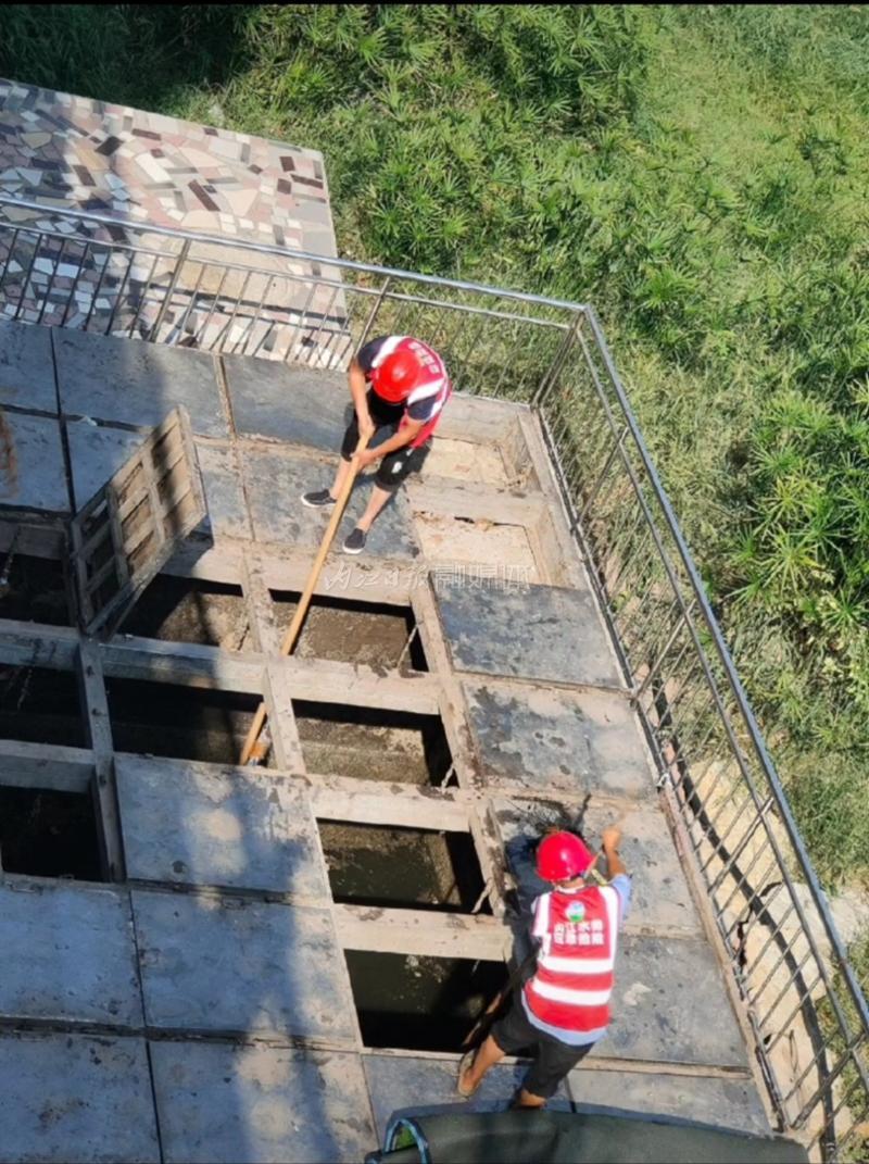 難度來自于高溫。泵房分布在甜城湖沿岸,緊挨城市主干道,為了不影響城市交通,清理時間一般安排在20時過后。最近持續高溫,即便深夜,內江的溫度依然保持在36℃左右,在悶熱潮濕的環境里,工人們汗如雨下,很容易中暑。