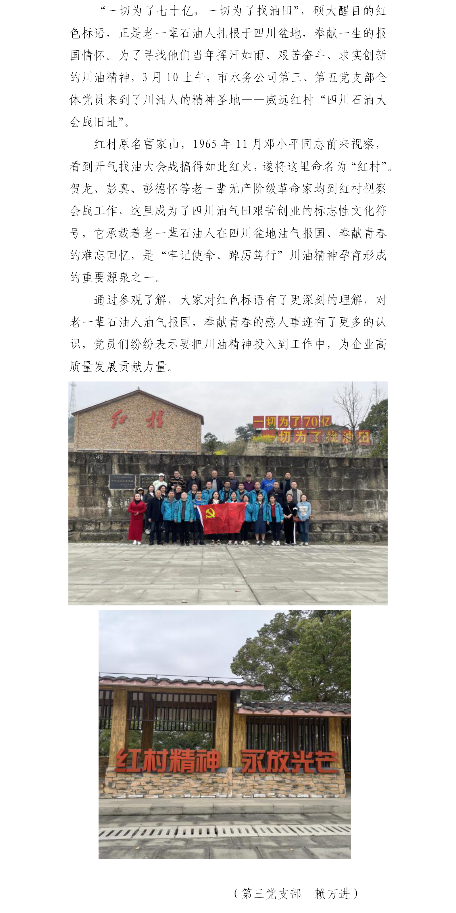 黨支部聯(lián)合開展主題黨日活動—— 參觀川油人的精神圣地:“紅村”