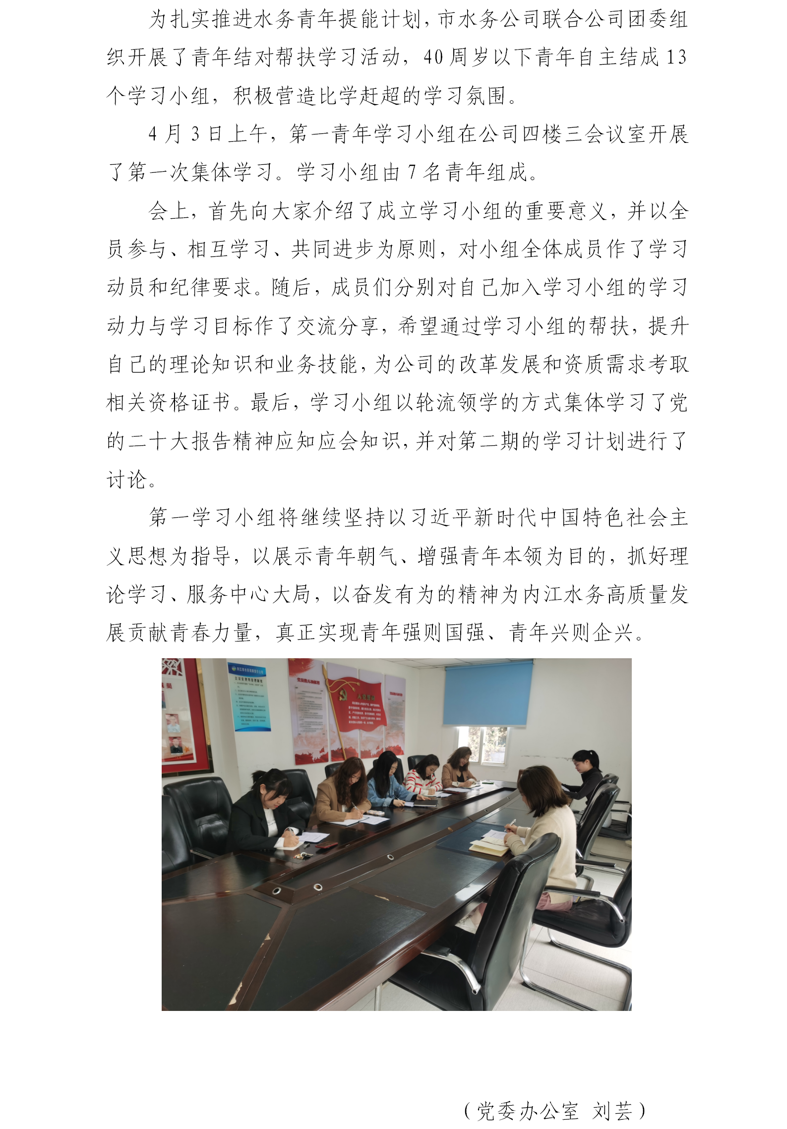 市水務公司青年幫扶學習第一學習小組開展第一次集體學習