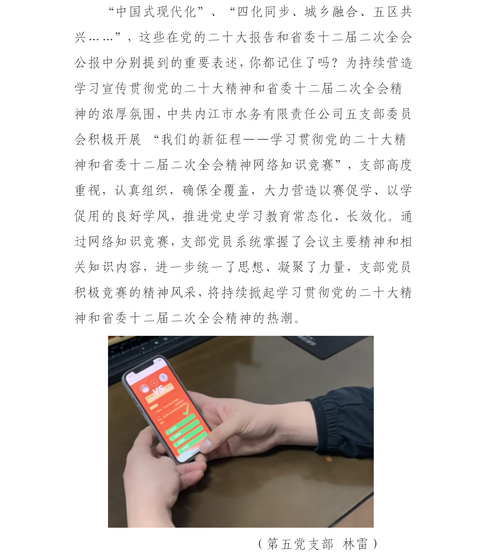 水務(wù)公司第五黨支部積極參與“黨的二十大精神及省委十二屆二次全會(huì)精神網(wǎng)絡(luò)知識(shí)競(jìng)賽”