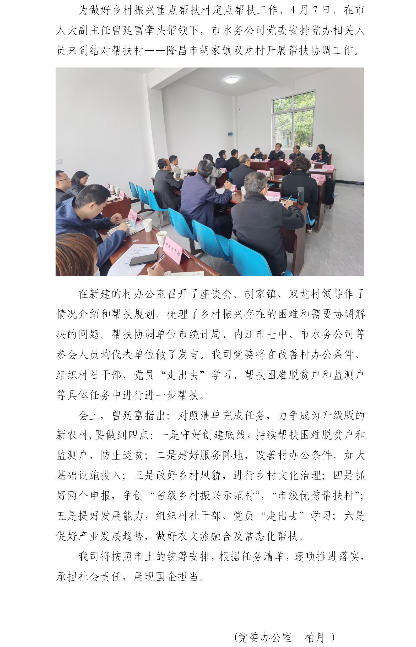 市水務公司到隆昌市胡家鎮雙龍村開展幫扶協調工作