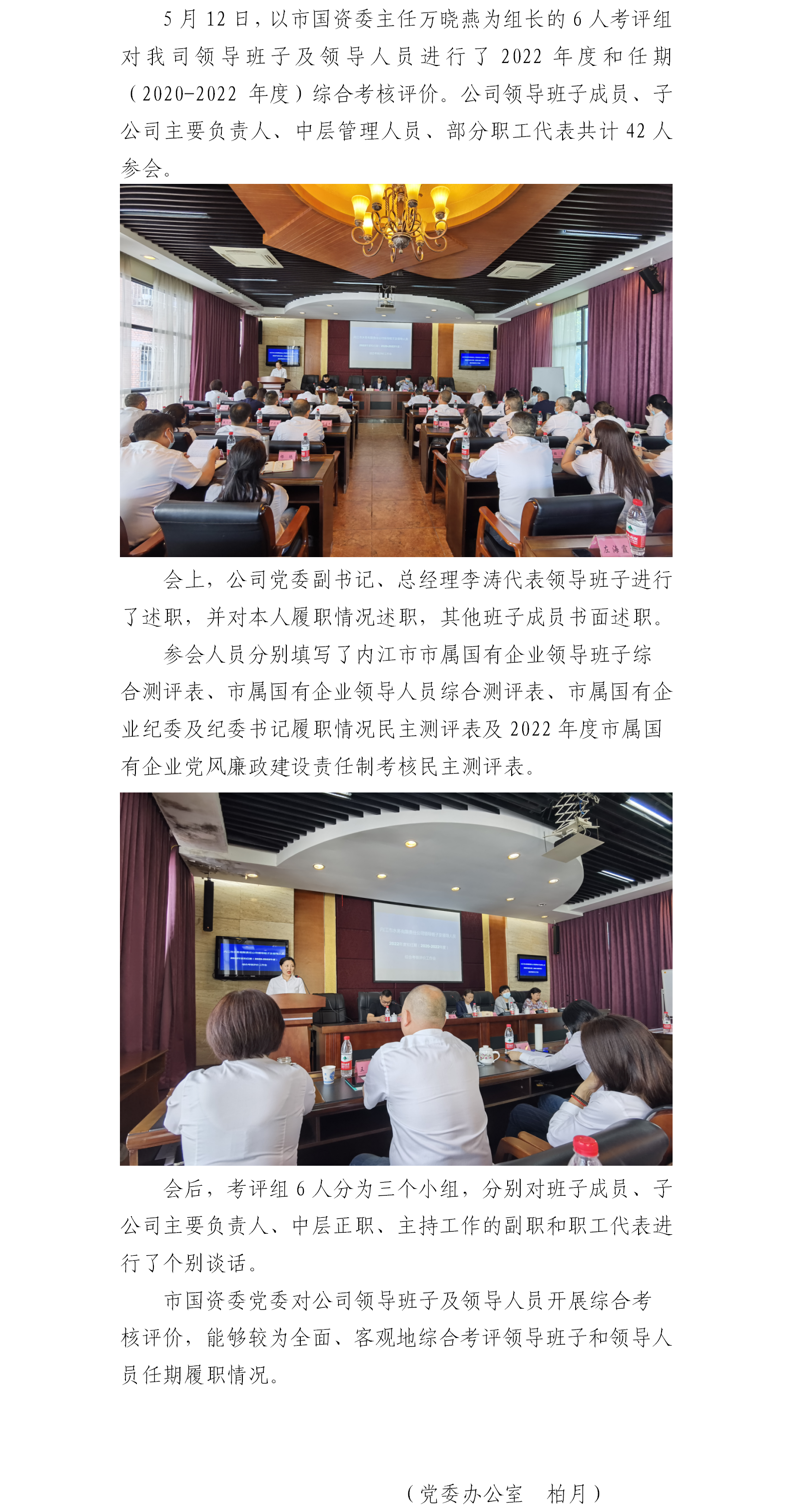 市國資委黨委對公司領(lǐng)導(dǎo)班子及領(lǐng)導(dǎo)人員開展2022年度和任期綜合考核評價