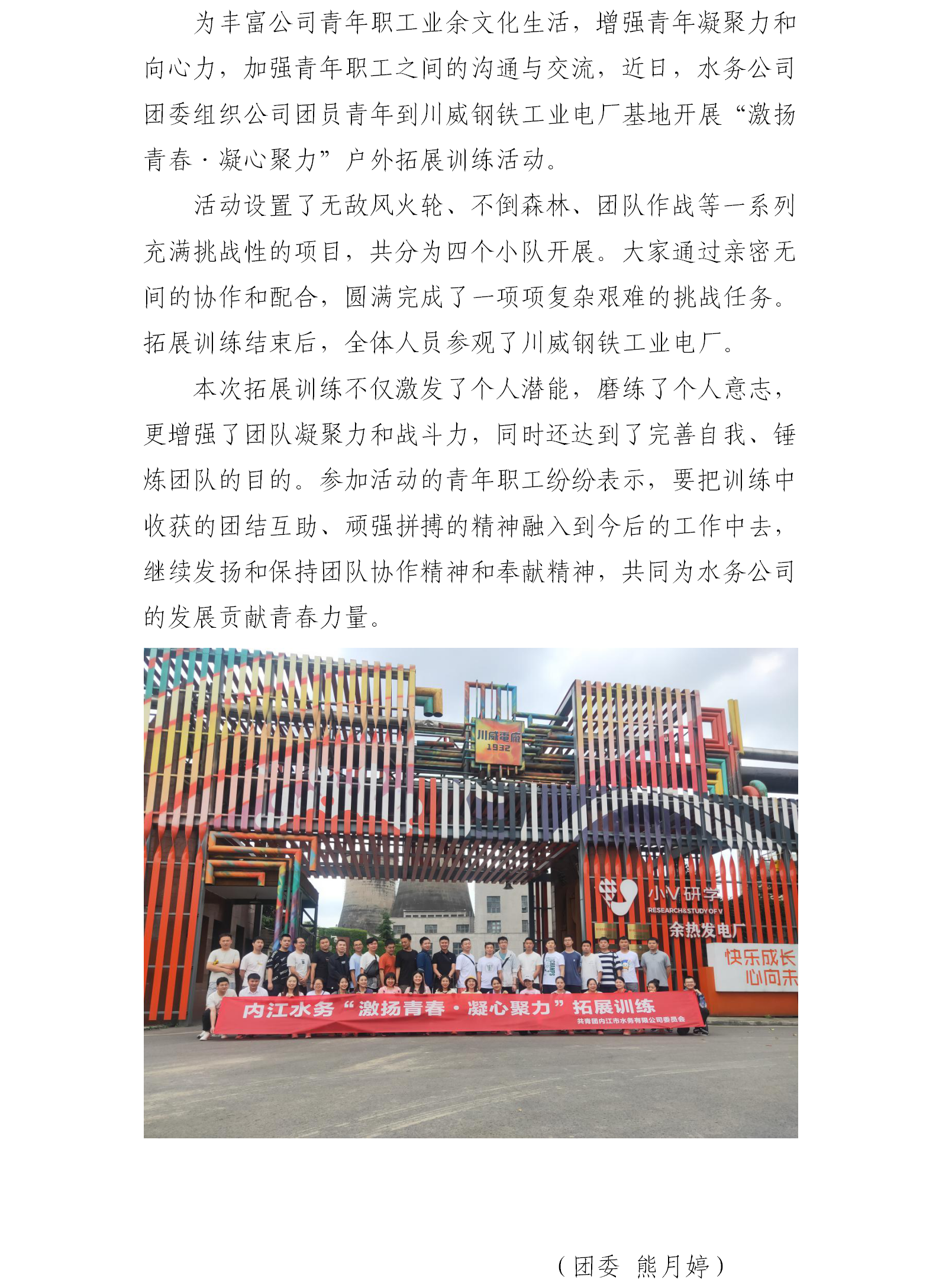 水務公司團委開展“激揚青春·凝心聚力”戶外拓展訓練活動
