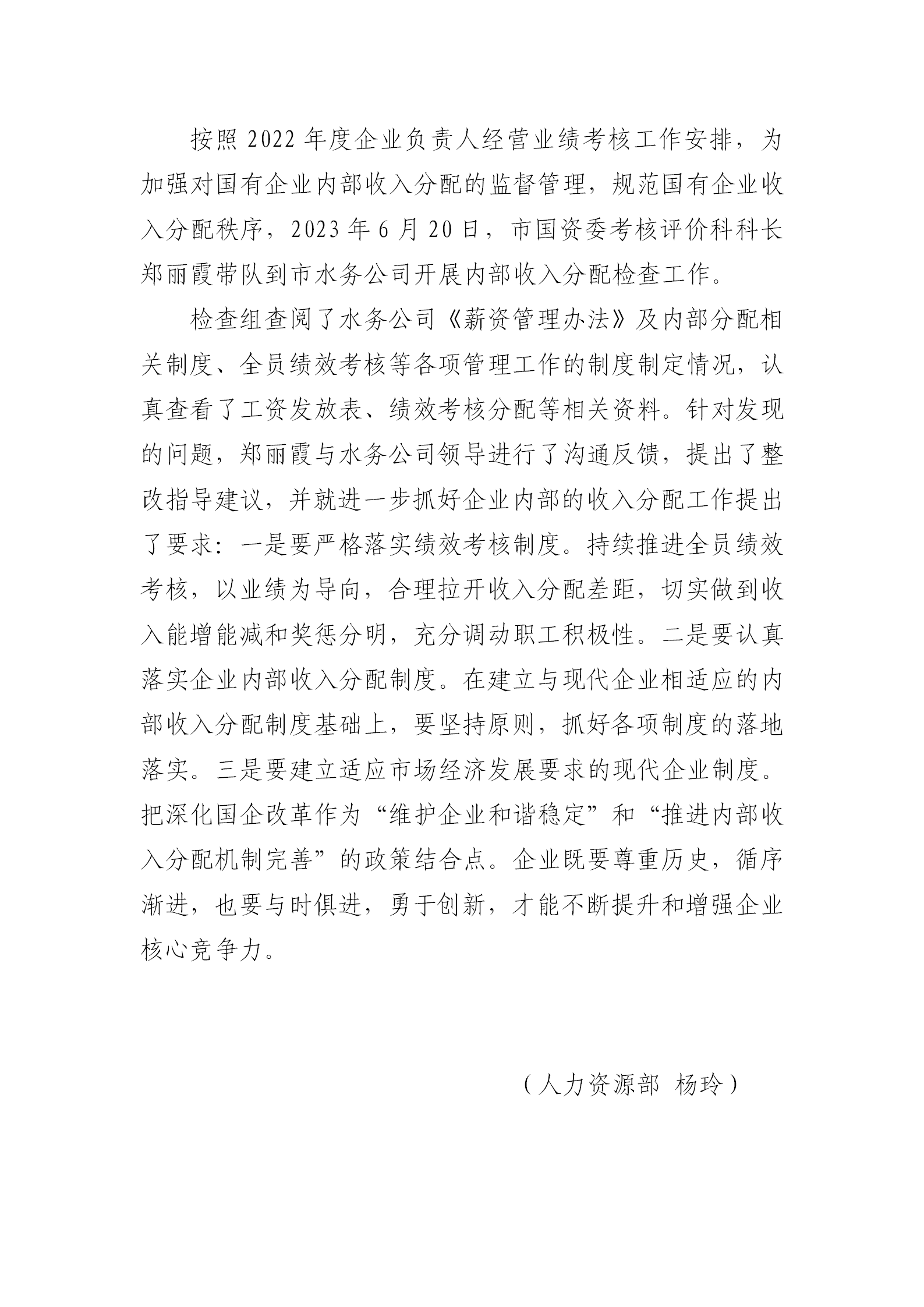 市水務公司接受市國資委內部收入分配檢查