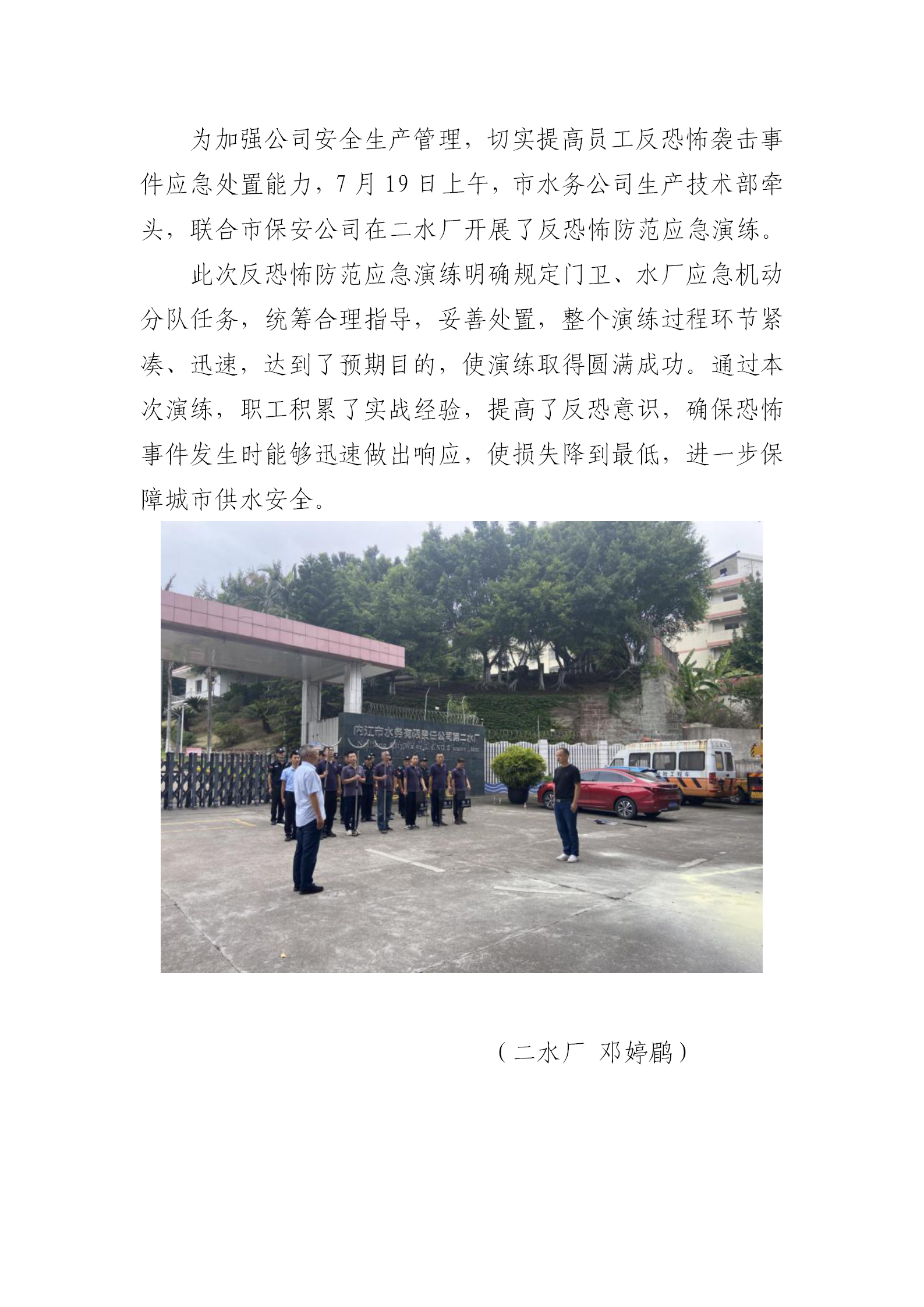 二水廠開(kāi)展反恐怖防范應(yīng)急演練