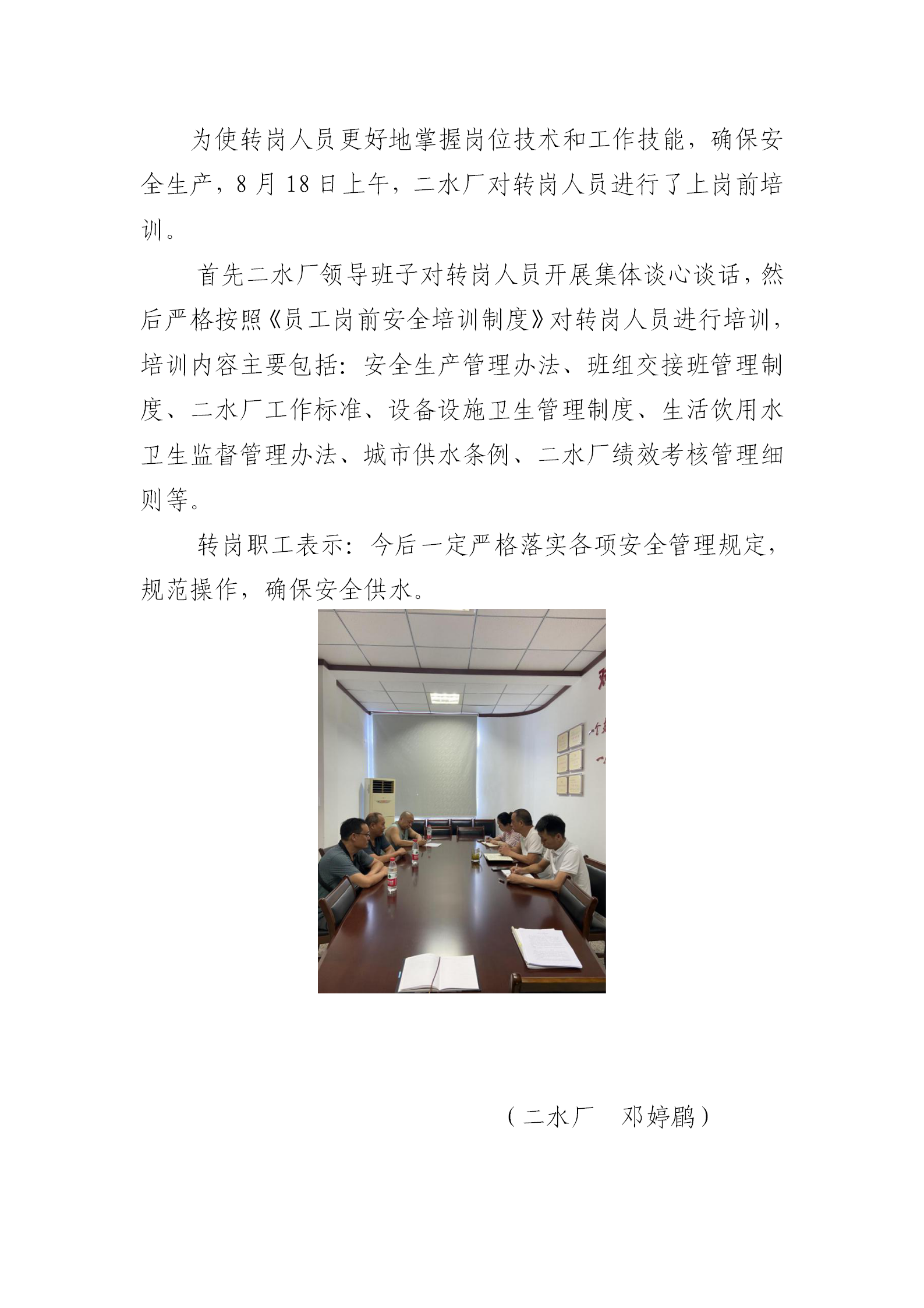 二水廠完成轉崗人員崗前培訓工作
