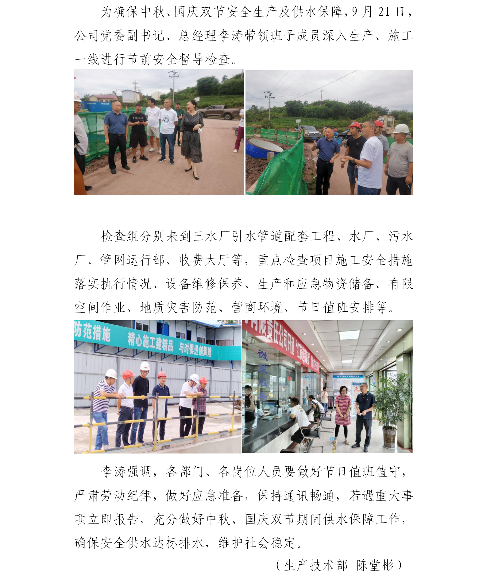 歡度國慶佳節 確保安全供水 ——公司組織中秋、國慶節安全檢查