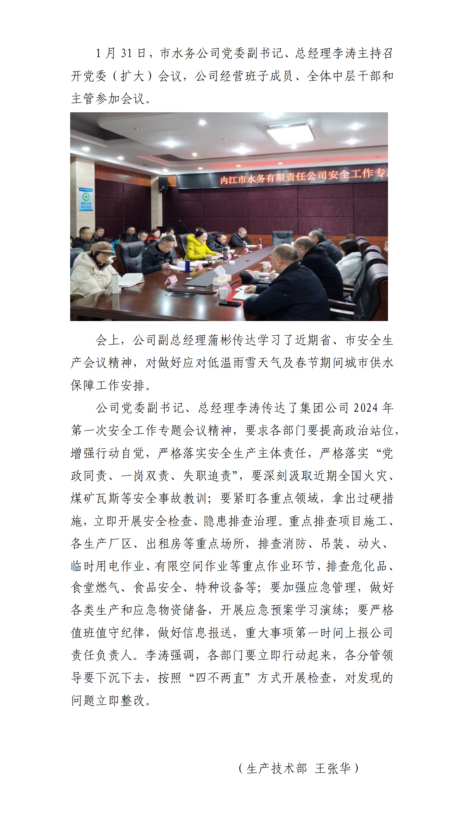 水務(wù)公司召開(kāi)安全生產(chǎn)專題會(huì)